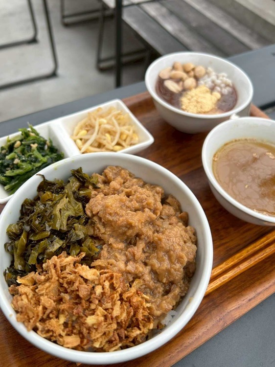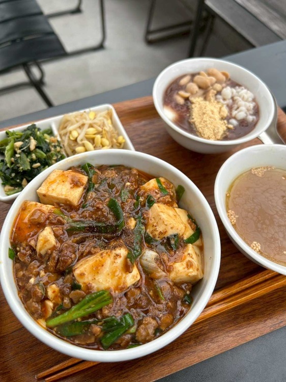 写真は麻婆飯とルーロー飯のセット。スープや副菜、ミニ豆花付き。セットで1300円ととてもリーズナブル♪