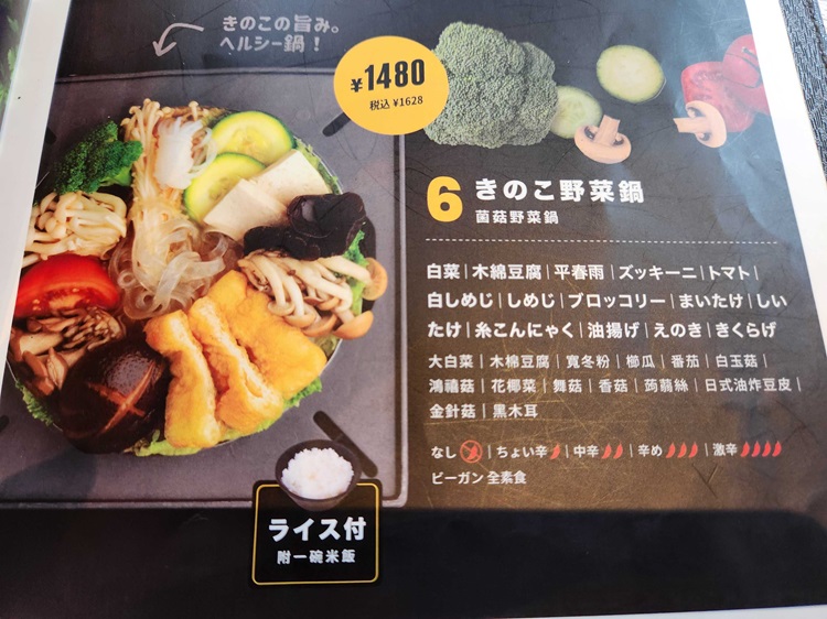 基本的にはお肉が入ったメニューがほとんどですが、1種類だけVEGAN対応の鍋を用意してくれています🌿