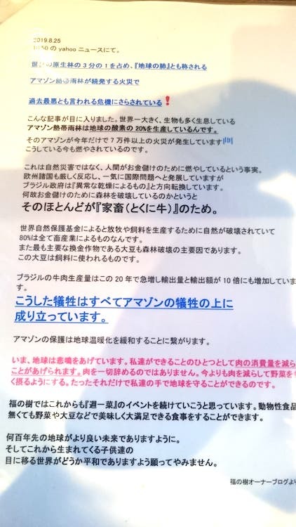 福の樹さんは提供しているメニュー全てがヴィーガンではありませんが、ヴィーガン対応メニューがあります。