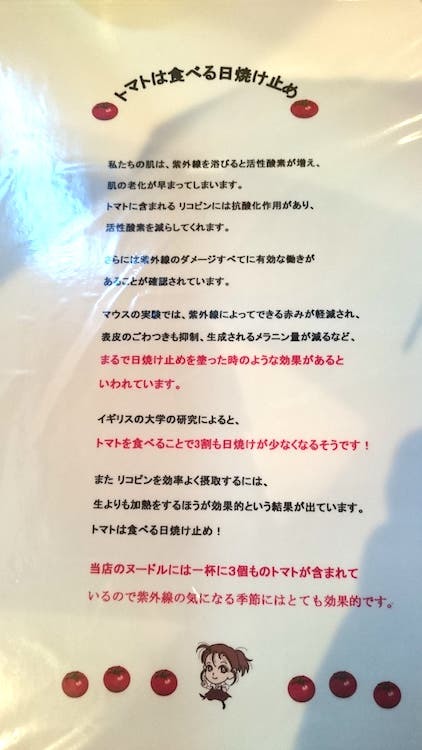 一杯のラーメンにはだいたいトマト3個がスープに使われているそうで、美容と健康にもとてもいいそうです。